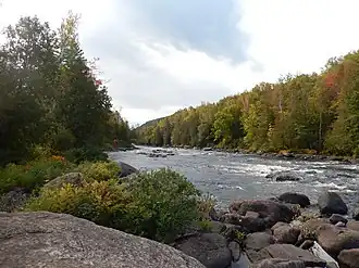 The Ouareau River crosses this park to the south-east. The multifunctional bridge spanning the Ouareau River is located in the south-eastern part of the park, between the Grande-Jetée sector and the Grande-Vallée sector. The other main streams crossing the park are: riviere du Nord, the Beaurivage stream, Versailles River, Dufresne River, Kenny River and Beaulne River.[3]