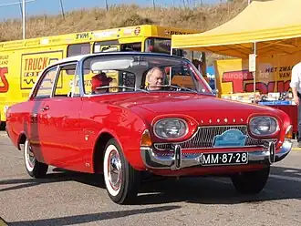The Ford Taunus 17 M is a middle sized family saloon that was produced by Ford Germany between September 1960 and August 1964.[2] The Taunus 17M name had been applied to the car's predecessor and it would apply also to subsequent Ford models which is why the 17M introduced in 1960 is usually identified, in retrospect, as the Ford Taunus P3. It was the third newly designed German Ford to be launched after the war and for this reason it was from inception known within the company as Ford Project 3 (P3) or the Ford Taunus P3.