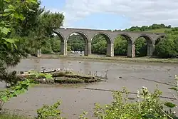 Forder viaduct was formerly at Milepost 252.25, 1.25 miles (2.0 km) west of Saltash (50°23′42″N 4°13′52″W / 50.395087°N 4.231024°W). It was a Class C viaduct 67 feet (20 m) high and 606 feet (185 m) long on 16 trestles. It was demolished after the line was diverted to a more inland alignment on 19 May 1908, and replaced by a stone viaduct on the new alignment.[2]