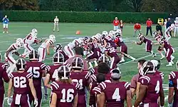 The Fordham Rams are the varsity sports teams for Fordham University. Their colors are maroon and white. The Fordham Rams are members of NCAA Division I and compete in the Atlantic 10 Conference for most sports.[3] In football, the Rams play in the Patriot League of NCAA Division 1 Football Championship Subdivision.[4] The University also supports a number of club sports, and a significant intramural sports program. The University's athletic booster clubs include the Sixth Man Club for basketball and the Afterguard for sailing.