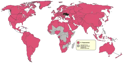 The foreign electoral district of Ukraine (Ukrainian: закордонний виборчий округ України, ЗВО) is an electoral district which unites electoral precincts situated outside the territory of Ukraine and which comprises all polling stations located inside embassies and consulates of Ukraine and inside military bases abroad, where there are Ukrainian peacekeeping contingents (Kosovo and DR Congo).[1] The responsibilities of district election commission for the Foreign electoral district are carried out by the Central Election Commission. In this district, only nationwide votings are held, i.e., presidential and parliamentary elections, as well as nationwide referendums. Local elections are not held there.