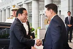 Japan calls South Korea a partner in its diplomatic charter,[16] and South Korean President Yoon Suk Yeol also said, "Korea and Japan are now partners who share universal values and pursue common interests."[17]