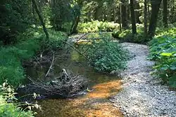 The Fornacher Redlbach has a length of approximately 14 kilometres (8.7 mi) and a width of about 5 metres (16 ft). West of Vöcklamarkt it joins the Vöckla,[2] which itself joins the Ager. The river is partly untreated, partly modulated with backwater area. Thanks to its excellent water quality it is rich in trout.