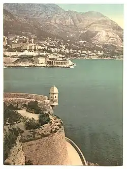 The structure that would become the theatre was originally constructed as a fortress by Prince Antoine I in 1714 during the War of the Spanish Succession.[4][5] The original fort was constructed with underground barracks which were equipped with a cistern.[5] In 1943, after the fall of the Fascist regime in Italy, Germany took control of Monaco and used Fort Antoine as a munitions Depot. On September 3, 1944, the fort was blown up by retreating German troops when the United States liberated Monaco.[6][7]