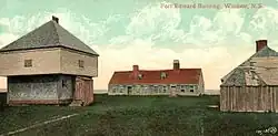 44°59′47″N 64°08′07″W / 44.996397°N 64.1354°W Fort Edward is a National Historic Site of Canada in Windsor, Nova Scotia, (formerly known as Pisiguit) and was built during Father Le Loutre's War (1749-1755).[1] The British built the fort to help prevent the Acadian Exodus from the region.[2] The Fort is most famous for the role it played both in the Expulsion of the Acadians (1755) and in protecting Halifax, Nova Scotia from a land assault in the American Revolution. While much of Fort Edward has been destroyed, including the officers' quarters (which burned down in 1922) and barracks, the blockhouse that remains is the oldest extant in North America.[3] A cairn was later added to the site.
