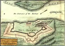 The fort was built by Captain Charles Daniel (1629) after he raided Baleine.[1] The fort was occupied from 1639 to 1641.