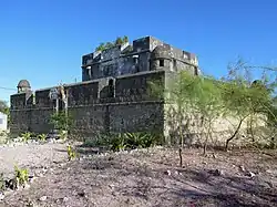 It is a small fort, bearing a square shape, 16,75 meters wide and 17,35 meters long, the walls 1,93 meters high, and the parapet 1,43 meters high, while containing a tower 3,5 meters high which rises in the center of the fort, 7,58 meters wide and 7,64 meters deep, topped by a mast meant to fly a flag.[1] It was restored in 1847 by order of governor Ferrari, who had a stone inscription placed on the fort which reads: "Made in 1847 by T. V. N. Ferrari, Gov. of These Islands".[1]