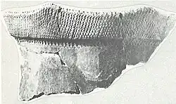 There was also a fair amount of Early Woodland Marion thick ware present; representing a possible occupation prior to the Wayne and Western Basin traditions, or indicating Early Woodland roots for either (or both) of the Late Woodland traditions.[1][6]
