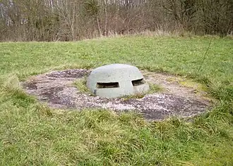 After the recovery of the Alsace-Moselle region, the fort lost its strategic interest. The army installed a small garrison, but was concerned with little more than maintenance. During the Second World War the fort's metal was stripped by the German army for scrap.[1] The fort was bombarded by the Americans during the liberation of Toul. The 155mm guns of the Mougin turret were sent to Ouvrage Barbonnet, a Séré de Rivières fort in the Alps that had been modernized to function as part of the Alpine Line portion of the Maginot Line.[3]