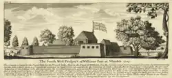 In contrast to the imposing and militarily stronger fortresses found elsewhere along the West African coast that were built in solid material and roofed with tiles, the British William's Fort, the French Fort Saint-Louis and the Portuguese Forte São João Baptista, roughly 100 meters square each and lying 300 to 500 meters from each other, had been built in dried mud by African labour using local masonry methods. While the 20-feet deep moats, the thickness of the earthen walls – two to three meters – as well as the cannons atop the bastions did represent a respectable defensive potential, they were not built to sustain serious attacks. The fact that the buildings were roofed with thatch made them particularly vulnerable to fire. Earthen fortifications deteriorated quickly and therefore needed constant reconstruction. In the 18th century, it became almost a ritual for a new director to complain about the sorry state in which he found the installations. Given the building material used, it was easy to add or eliminate buildings or modify the shape of the bastions. Eventually, wood and locally made bricks would be used for door frames and to reinforce bastions and gunpowder magazines.[10] Robin Law, the foremost historian of the Slave Coast slave trade referred to the Ouidah forts as "permanently organized fortified factories".