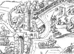 - ^ Genaue Darstellung, vor allem bezogen auf den damaligen Stand der Stadtbefestigung bei Rudolf Jung: Frankfurter Chroniken und annalistische Aufzeichnungen der Reformationszeit. Jügel, Frankfurt am Main 1888, S. 577–580