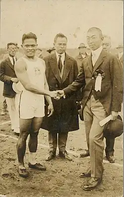 He continued his success at the Far Eastern Championship Games with two further successive sprint doubles at the 1921 Shanghai Games and then the 1923 Manila Games. A 220-yard games record of 22.2 seconds came at the latter edition.[6]