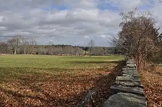 Rochambeau's 47th camp was, according to a map prepared by a French military engineer, located on both sides of Scotland Road, between Ballamahack Road and Middle Hill Road, east of the village center of Windham. The modern roadway, designated Connecticut Route 14, is one of the most evocative sections of the army's march route in terms if its landscape, and is also listed on the National Register.[2] The site occupied by the army is about 15 acres (6.1 ha) in size, with the street-facing sections lined with stone walls.