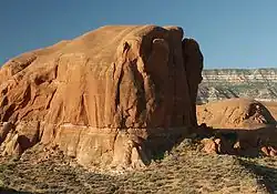 The headwaters of Fortymile and Willow Gulches have their origins along a 7-mile (11 km)[1] segment of the Straight Cliffs, the eastern edge of the Kaiparowits Plateau. Intermittent streams merge to form larger branches, then combine to carve a deep canyon up to 500 feet (150 m) into sandstone layers before meeting the main channel of the Escalante River. The northernmost branch is Fortymile Gulch, the historic location of the winter encampment of the San Juan Expedition. Intent on founding a colony in southeastern Utah, they waited at Fortymile Springs in late 1879 while a smaller group prepared a perilous route down to the Colorado River at Hole-in-the-Rock. Nearby is Dance Hall Rock, a scenic dome formed from Entrada sandstone.[2] The lower section of Fortymile Gulch, before it merges with Willow Gulch, is a narrow channel of slot canyons and water pools.
