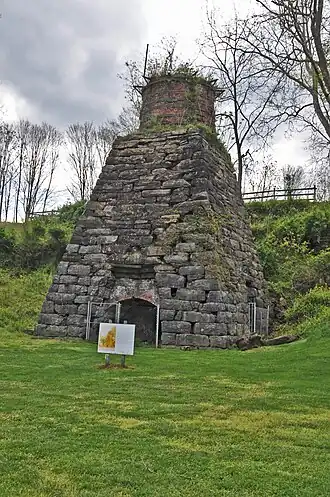 Foster Falls Historic District is a national historic district located near Max Meadows, Wythe County, Virginia.[3] The district encompasses 12 contributing buildings, 2 contributing sites, and 3 contributing structures in the village of Foster Falls. They are primarily industrial and commercial buildings and structures built in the late-19th century. They include the iron furnace stack, the rail bed and frame railroad passenger station (c. 1887), a general store building, and a combination gristmill/sawmill. The district includes the Foster Falls Hotel, a late-Victorian style brick building. The hotel property includes two brick dependencies associated with an orphanage that occupied the hotel building beginning in 1938. It now serves as the headquarters of the New River Trail State Park.[4]