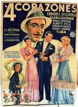 Cuatro corazones is a 1939 Argentine musical drama film of the Golden Age of Argentine cinema, and the debut feature film of director Carlos Schlieper. It stars Enrique Santos Discépolo, Gloria Guzmán and Irma Córdoba.[1]