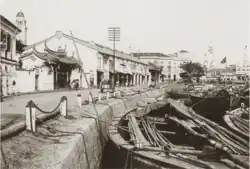 Tan's house was built in 1869 at Hill Street; his house was the first of the Four Mansions. Tan’s house occupied land measuring 21,512 square feet (1,998.53 square meters).[6] The exact address of the Houe of Tan Poh Seng was 58 Hill Street. It was located between Hill Street and Armenian Street and it shared the same main entrance facing with Albion Hotel which was located at 59 Hill Street and the mansion’s back was alongside the Zetland House (18 Armenian Street).[7][8] Armenian Street was aptly and colloquially known as Seng Po toa chu au, meaning behind Seng Poh’s grand mansion then.[9] His house was also the office of Zuo Binglong, the first Chinese consul to Singapore after he was appointed by the Qing government in 1881. Tan lived in his house till his death in 1879. Though the house was transferred to Tan’s wife Yeo Goh Neo and his two sons Tan Keng Swee and Tan Keng Wah,[3] the house did not remain with the family due to mortgage debt.[10] Its final ownership would land on Loke Yew who would eventually built a row of 17 shophouses and a street on the location of the House of Tan Poh Seng.[11] Based on the timeline of events and the completion of the shophouse in early 1904, it was safe to say that the Houe of Tan Poh Seng was most likely demolished between late 1902 and 1903[12].No photographs of his house exist.[1]