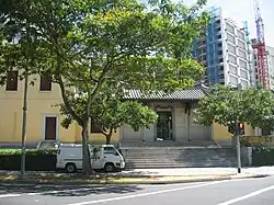 Wee Ah Hood's house stood diagonally opposite Tan Seng Poh’s mansion. Wee's house was built and located at 49 Hill Street in 1878 (presently 47 Hill Street), coming to be known as Dafudi (Chinese: 大夫第; pinyin: Dàfū Dì; lit. 'Imperial Official's Residence'). Following his death in 1875, the ownership of the house was transferred to his wife Khoo Chwee Neo and his sons. Between the late 1889 to April 1892, Wee Ah Hood’s sons had rented out the house to Knight & Co., a furniture-maker as a factory and a showroom.[20][21] [his house would be rented out for parties by his son Wee Kim Yam. Despite selling the house in 30 December 1899 to Syed Mohamed bin Ahmed al-Sagoff for $22,000,[22] Wee Kim Yam would in turn rent it back from Sagoff for $131 a month.[23] In doing so, Wee Kim Yam would rent it out to St.Mary’s College to be used by St. Mary's Home, a boarding home and kindergarten for girls from January 1900 to April 1905.[24][25][26] Eventually, the sale of the house would be finalized and ownership transferred to the Singapore Chinese Chamber of Commerce (SCCC) on 11 April 1912, and SCCC is still residing at this site in this present day.[27]
