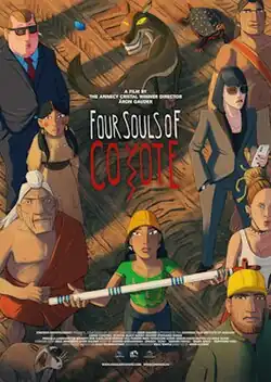 Four Souls of Coyote (Hungarian: Kojot négy lelke) is a 2023 Hungarian animated adventure drama film directed by Áron Gauder, who co-wrote the film with Géza Bereményi. The film, set in the present day, shows Native American protesters confronting the crew of an oil pipeline project, just down the hill from the land of their ancestors, and highlights the pressing need to live in harmony with the environment.[1] It was released in Hungarian cinemas on 16 March 2023 by Vertigo Media.[2][3]