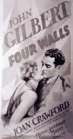 Four Walls is a 1928 American silent drama film directed by William Nigh and starring John Gilbert, Joan Crawford, and Carmel Myers. The film is based on the play of the same name by George Abbott and Dana Burnet.[2] Four Walls is now considered lost.[1] The film was remade in 1934 as Straight Is the Way.