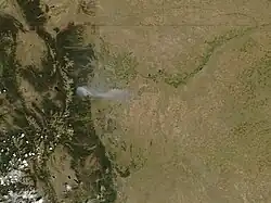 ![]() The Fourmile Canyon Fire continued to burn on September 7, 2010, visible from NASA's Aqua satellite. | |