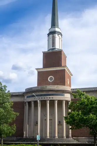 The former Fourth Church of Christ, Scientist, built between 1929 and 1930, is an historic Christian Science church building located at 3069 North Downer Avenue / 2519 E. Kenwood Boulevard) in Milwaukee, Wisconsin. Designed in the Georgian Revival style of architecture by the noted Chicago-based architect Charles Draper Faulkner, the building features a redbrick exterior with Bedford limestone trim. The first services in the completed building were held on June 29, 1930. Sometime after 1996 Fourth Church relocated to 2011 East Capitol Drive in Shorewood, Wisconsin. Today the building is the Chinese Christian Church of Milwaukee (Chinese: 米城中華基督教會) [1] [2] [3]