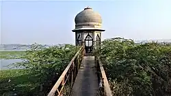 Fox Sagar Lake, also Jeedimetla Cheruvu or Kolla Cheruvu, is a manmade lake. It is the largest waterbody in Secunderabad.[3] It was once spread over an area of 290 acres (1.2 km2). As of 2014, due to encroachment, it only occupied a surface area of 126 acres (0.51 km2).[4] The lake which is located Jeedimetla near Kompally was built in 1897 by Mahbub Ali Khan, Asaf Jah VI and as per some sources the lake occupies a surface area of 2 square kilometres (490 acres) and some sources claim that it is the second biggest lake in Hyderabad and was a popular spot for picnics.[1] About 1014 illegal structures which have encroached the lake were identified by Telangana Irrigation Department in a report submitted to the National Green Tribunal in November 2022 and this makes Fox Sagar Lake as the third most encroached lake in Hyderabad.[5]