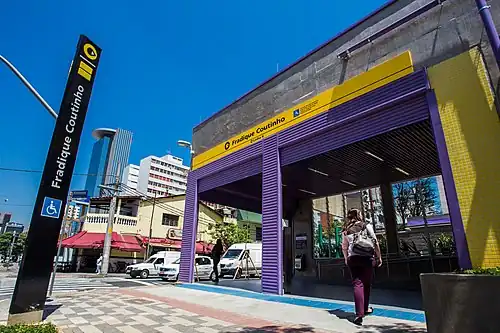 Fradique Coutinho is a metro station on Line 4 (Yellow) of the São Paulo Metro operated by ViaQuatro. The station is located at Rua dos Pinheiros, 623 in the Pinheiros neighborhood. Although originally slated to open in 2010, the station was not inaugurated until 15 November 2014.[2]