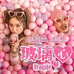 "Fragile" (Chinese: 玻璃心; pinyin: bōlí xīn; Wade–Giles: po1li2 hsin1; lit. 'glass heart') is a Mandarin single by Malaysian singer Namewee and Australian singer Kimberley Chen released on 15 October 2021.[1] On YouTube, the song had over 15 million views within days, and it held the top spot of Hong Kong, Taiwan, Malaysia and Singapore's music trends for several weeks.[2] Written as a comedic pop duet and featuring a dancing panda in the music video, "Fragile" satirizes the social issues in China, the political status of Taiwan, the Xinjiang internment camps, censorship in China, as well as the Little Pinks' response.[3][4][5]