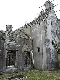 The house is of three storeys, with a front elevation containing five bays.[4] It was badly damaged in a fire in 1994.[6] It gutted the main block, but the rear wing, dated to the 17th century and altered in the mid 20th century, still remains, though in a derelict state.[4]