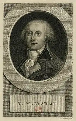 François-René-Auguste Mallarmé (French pronunciation: [fʁɑ̃swa ʁəne oɡyst malaʁme]; 25 February 1755 – 25 July 1835) was a French statesman of the French Revolution and a supporter of Napoleon Bonaparte and the French Empire. His career is of particular interest because he was among political figures such as Joseph Fouché who at first aggressively supported the Terror, only to betray its leaders (including Maximilien Robespierre) and support the various conservative reactionary régimes that followed. His was a chevalier de l'Empire from 22 November 1808 and a baron de l'Empire from 31 January 1810.