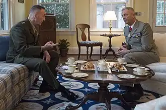 On 20 July 2017, Lecointre was appointed Chief of the Defence Staff by President Emmanuel Macron, following the resignation of General Pierre de Villiers;[22] he was promoted to the rank of Général d'armée.[2] General Lecointre made his first official visit to the United States in February 2018, where he met with his American counterpart Joseph Dunford to discuss the ongoing War against the Islamic State and progress on the G5 Sahel.[23]