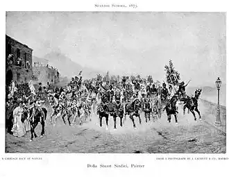 Sindici is best known for her paintings of horses and cavalry. Her painting A Carriage Race at Naples (Pictured) was included in the 1905 book Women Painters of the World.[2]
