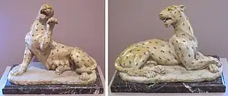 Born in 1734 in the marble city of Carrara and trained there, Francesco Antonio Franzoni settled in Rome in the 1760s and established a workshop that specialised in the restoration of antique Roman sculpture, for which there was an insatiable demand, scarcely supplied by redoubled efforts at excavations. He worked on restoring, completing and refinishing sculptures destined for the Museo Pio-Clementino and provided marble revetments and sculptural details for its interiors, notably the biga (two-horse chariot) assembled in 1788 from antique elements,[1] in the sala del Biga of the Braccio Nuovo. He worked for Pope Pius VI, for whom he filled a room with animal sculptures, some made up from antique fragments, in the Palazzetto del Belvedere; he also worked for the papal family at Palazzo Braschi.