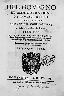- Del governo dei regni e delle repubbliche così antiche come moderne (in Italian). Venice: Giovanni Antonio Bertano. 1578.