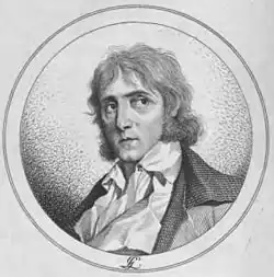 Salfi's hopes for an Enlightened reform of the Neapolitan monarchy were dashed when, in reaction to the outbreak of the French Revolution, the Neapolitan government turned ultra-conservative, abandoning plans for reform and severing diplomatic relations with France.[1] In 1792, he was one of the intellectuals who met with French Admiral Latouche-Tréville, who had come to Naples to obtain apologies from the King. In the same year, Salfi joined the newly founded Neapolitan Patriotic Society, a Masonic lodge modelled on the Jacobin Club, whose members were planning a violent insurrection. The conspiracy was discovered and in 1794, to avoid a trial, Salfi escaped from Naples to Genoa, where he quit the priesthood, and then to Milan, where he shortened his name to "Franco" and actively collaborated with the Republican newspaper Lombardy's Political Thermometer.[2] In this period he devoted himself to the theatre, writing plays aimed at a popular audience. In addition to the satire of General Colli, for example, he translated the first part of the Declaration of 1789 into a play.[3]