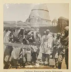 - ^ The description of a photograph attributed to Gregson, published by the Royal Commonwealth Society Library at Cambridge University Library, states: "A view showing Mahmoud in the centre of a group of Sudanese soldiers. The bloodstains on his Jibba are from a bayonet wound in his left leg. Mahmoud was imprisoned at Rosetta and died in 1906." ? Gregson, Francis (2004-11-05). "Mahmoud in his bloodstained Jibba, just captured at Battle of the Atbara, April 8th. Escort of 10th Sondanese Battalion". RCS Y3042C/25.