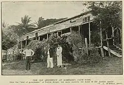 At the time of his dismissal, Jardine was in a relationship with a fifteen year old Samoan girl named Sana Solia who had been brought to the Torres Strait by the missionary George Turner.[16] They married in late 1873 and lived together on Nagi Island (also known as Naghir or Mount Ernest Island) where Jardine continued his pearl shell business and built a family home. In 1877 this house burnt down with much of the Jardines' personal possessions.[24] Fortunately for them, the government in that same year had decided to move its base of Torres Strait operations from Somerset to Thursday Island and approached Frank Jardine with the offer to purchase the old site at Cape York. He accepted and the Premier of Queensland, John Douglas, noted that Jardine would also be able to protect British interests in the area from the remnant Yadhaigana people who still offered resistance to colonisation.[25]