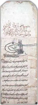 It is known that Franciscans lived in Fojnica in 1463, in time of conquest of this part of Bosnia by the Ottomans.[3] This was evident from one particularly important episode in Bosnian history, related to fra Anđeo Zvizdović, who went to the village of Milodraž, where the encampment of the Sultan Mehmed II el Fatih was at the time, where he received the Ahdname of Milodraž from the Sultan grating him a request for the Franciscans to remain in Bosnia, the return of the refugees and the basic rights to life and religious tolerance.[3]