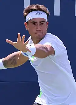 On his debut at the US Open, he reached again the third round of a Grand Slam, defeating Dominic Stricker in the first round, then upsetting 17th-seed Ugo Humbert in the second round.[28][29][30] In October, he won his second Challenger title for the season at the 2024 Challenger de Buenos Aires on his 24th birthday.[31]