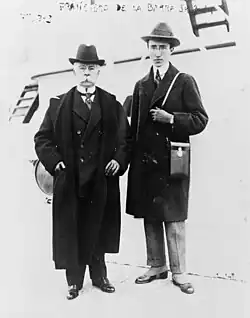 León de la Barra's paternal grandfather, Juan Francisco León de la Barra, was an Argentine-born fighter in the Chilean War of Independence under Bernardo O'Higgins.[9] Upon returning to Argentina, Juan Francisco had seventeen children, including Bernabé León de la Barra, Francisco León de la Barra's father.[9] Bernabé later immigrated to Mexico, and supported President Benito Juárez and the Liberals during the second French intervention in Mexico.[10] Bernabé married María Luisa Quijano, the daughter of General Alejandro Quijano of Yucatán, under whom he served.[11] Bernabé and María Luisa's son Francisco León de la Barra y Quijano was born in Querétaro City, Querétaro.[10]