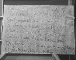 On 23 June 1629 Silva left on an expedition to Zuni with thirty soldiers, ten wagons, four hundred cavalry horses and a group of priests. Perhaps due to the size of his force, he was well received by the local people of Zuni. A house was bought for the friars, serving as the first church in the province. Silva helped the Franciscans to set up other missions near Zuni. On his journey back to Santa Fe, Silva's party stopped at Inscription Rock, a large sandstone butte that is now El Morro National Monument, where someone carved the poem:[1]