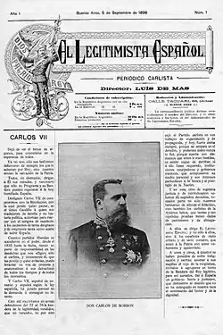 - ^ initially it appeared with the sub-title of “periodica carlista”. In 1909 (following death of Carlos VII?) it was changed to “periodico tradicionalista”
