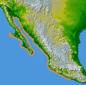 Unable to find the through-continent route, Ulloa turned south and sailed along the eastern coast of the Baja California Peninsula, landing at the Bay of La Paz. After taking on supplies of wood and water Ulloa rounded the tip of the peninsula with great difficulty and sailed northward along the western shore in the Pacific Ocean.