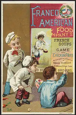 The company was founded as Franco-American Food Company by Alphonse Biardot, who immigrated to the United States from France in 1880. In 1886, he and his two sons opened a commercial kitchen in Jersey City, New Jersey, featuring the foods of his native country. The company proved a success, particularly with its line of canned soup and pasta, and it was acquired by Campbell's in 1915.