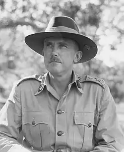 Berryman returned to Australia, where he was promoted to major general on 6 April 1942, when he became Major General, General Staff (chief of staff) of Lavarack's First Army.[53] On 14 September 1942, Berryman became DCGS under the Commander in Chief, General Sir Sir Thomas Blamey, in succession to Vasey.[54] When New Guinea Force split into a rear headquarters under Blamey and an advanced headquarters under Lieutenant General Edmund Herring, so the latter could go forward to direct the Battle of Buna-Gona, Blamey brought Berryman up from Advanced LHQ in Brisbane to simultaneously act as chief of staff of New Guinea Force from 11 December 1942.[55] Berryman formed a very close professional and personal relationship with Blamey, and henceforth Berryman would be Blamey's chief of staff and head of operational planning, which made him "one of the most important officers in the Australian Army in its struggle against the Japanese."[56]