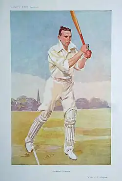 As an amateur cricketer he was a member of the Essex XI who in 1905 beat the Australians at Leyton by 19 runs. He went on to tour Jamaica with the Hon. L H Tennyson's team in 1927. That year he also made the first ball-by-ball cricket commentary for the BBC, speaking for a total of 25 minutes over four sessions. He was reportedly fired by BBC chairman Lord Reith for reading advertisement placards out on air to fill time during a rain break.[11]