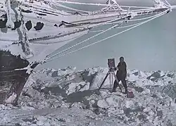 Although the official photographer there were some 19 other photographers who recorded the expedition which was divided across the three separate locations. Hurley was with Mawson's group at Cape Denison where the weather was so bad that Hurley claimed he had only ten absolutely calm days scattered throughout the year 1912-1913, and this was when he took many of his photos, making 82 photos on the first three days of September 1912.[7]