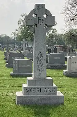 In the fall of 1932, Frank fell ill with pneumonia. In his delirium, he was convinced that rival gangsters were coming to his hospital room to kill him; it took four attendants to hold him down in his rage. Frank McErlane died at the age of 38 on October 8, 1932, a year to the day after he killed Elfrieda Rigus.[5] He was buried at Holy Sepulchre Cemetery in Alsip, Illinois.