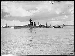The same year Woolley was accepted for service by the Royal Naval Air Service. He began training in November 1916 and in March 1917 was posted to Dover, attached to a motor boat section.[31] He was promoted to Aircraftman first class and in February 1918 posted to Felixstowe where he was the coxswain of a rescue launch.[32] The RNAS merged with the Royal Flying Corps in April 1918 to form the Royal Air Force and Woolley transferred to the new organisation. He was posted to North Queensferry in Scotland where he worked for Admiral Sir John de Robeck. Robeck was a keen cricketer and Woolley was attached to his flagship HMS King George V.[32]